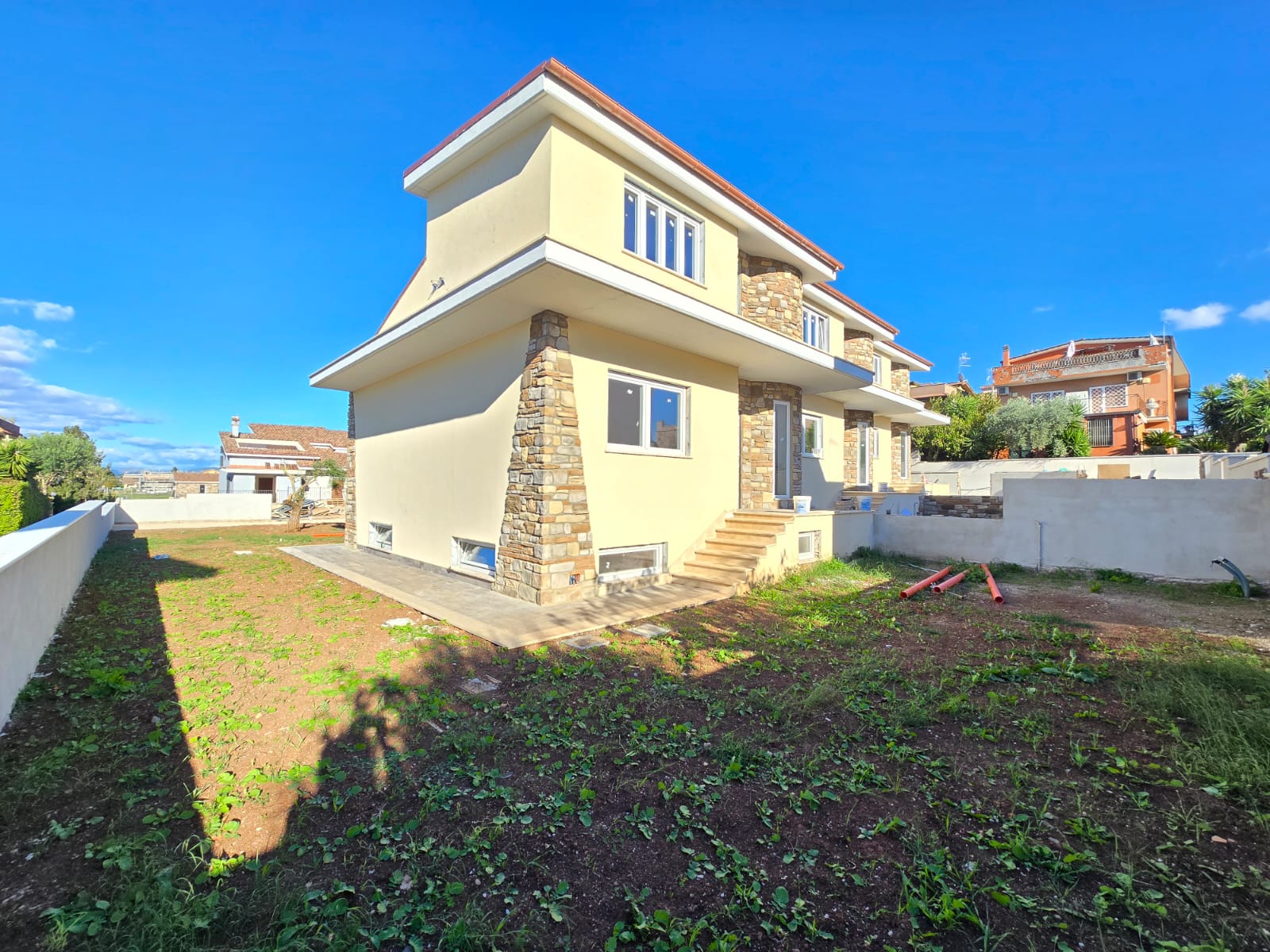 La Bonifazi Immobiliare di Frascati propone in vendita in zona Vermicino, adiacente a Via di Vermicino e precisamente in Via Casale Antonioni, all'interno di un nuovo complesso residenziale composto da 7 unità di VILLE BIFAMILIARI E TRIFAMILIARI di NUOVA COSTRUZIONE di varie metrature a partire da 160 mq con giardini privati e box auto di proprietà . Le ville sono disposte su tre livelli così suddivisi: Piano terra (residenziale): soggiorno con angolo cottura camera matrimoniale bagno e uscita sul giardino. Piano primo (mansardato): un locale con bagno. Sala hobby un metro fuori terra: open space con finestre e locale cantina. Completa la proprietà un posto auto all'interno del cortile privato. Le ville saranno altamente rifinite e saranno dotate di impianto termico a pavimento, pannelli solari per produzione di acqua, 1KW di Fotovoltaico e pannelli solari. L'immobile si trova in una zona residenziale e tranquilla ma ben servita da negozi e mezzi di trasporto. Nei pressi di Via di Passolombardo, vicino a scuole, bar, al centro commerciale e all' Università di Tor Vergata. A pochi chilometri dal GRA e ben collegato per raggiungere la fermata metro A Anagnina. ****Le presenti informazioni sono meramente indicative e non costituiscono elementi contrattuali***** LAVORI GIA' INIZIATI, CONSEGNA Giugno 2025. Per maggiori informazioni su tipologie, metrature e prezzi contattare l'agenzia per un appuntamento. PREZZI A PARTIRE DA € 395.000. Il Gruppo Bonifazi opera nel settore immobiliare dal 1995 con agenzie immobiliari presenti su gran parte del territorio nazionale. Il Franchising Immobiliare Bonifazi mette a disposizione tutta l’esperienza maturata in anni di attività con la volontà di trasferire questo prezioso know-how ai propri affiliati, attraverso il Manuale Operativo Bonifazi che racchiude una metodologia di lavoro precisa e capillare, valida per ogni punto vendita.