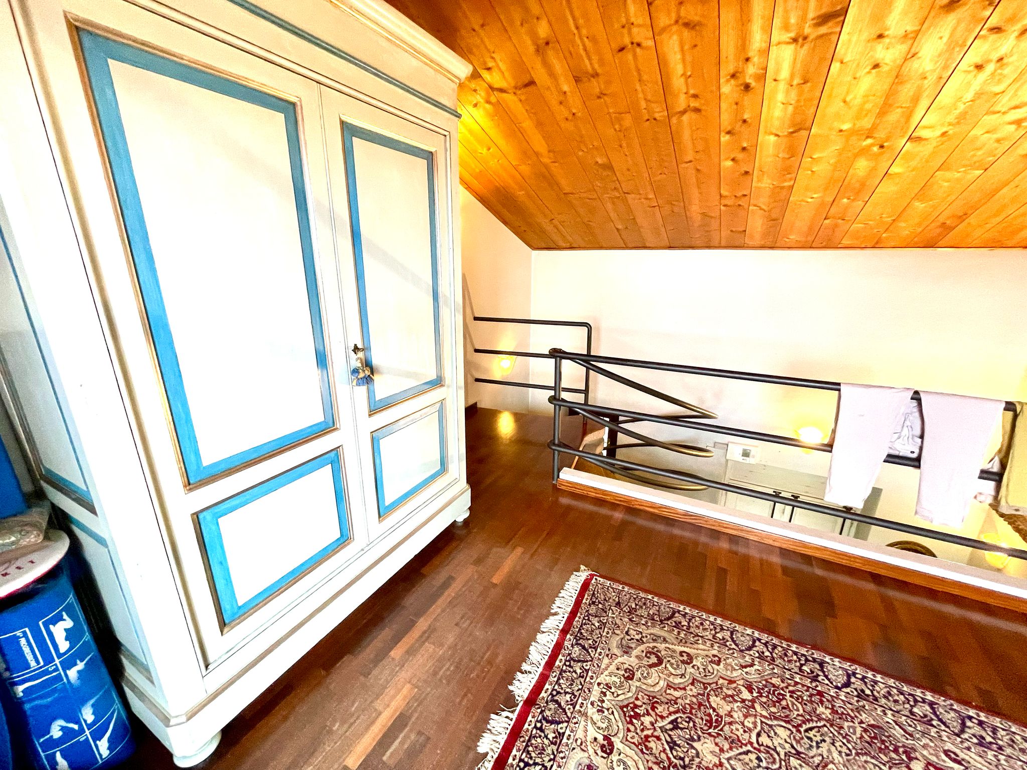 Al primo piano due camere, bagno ed open space.