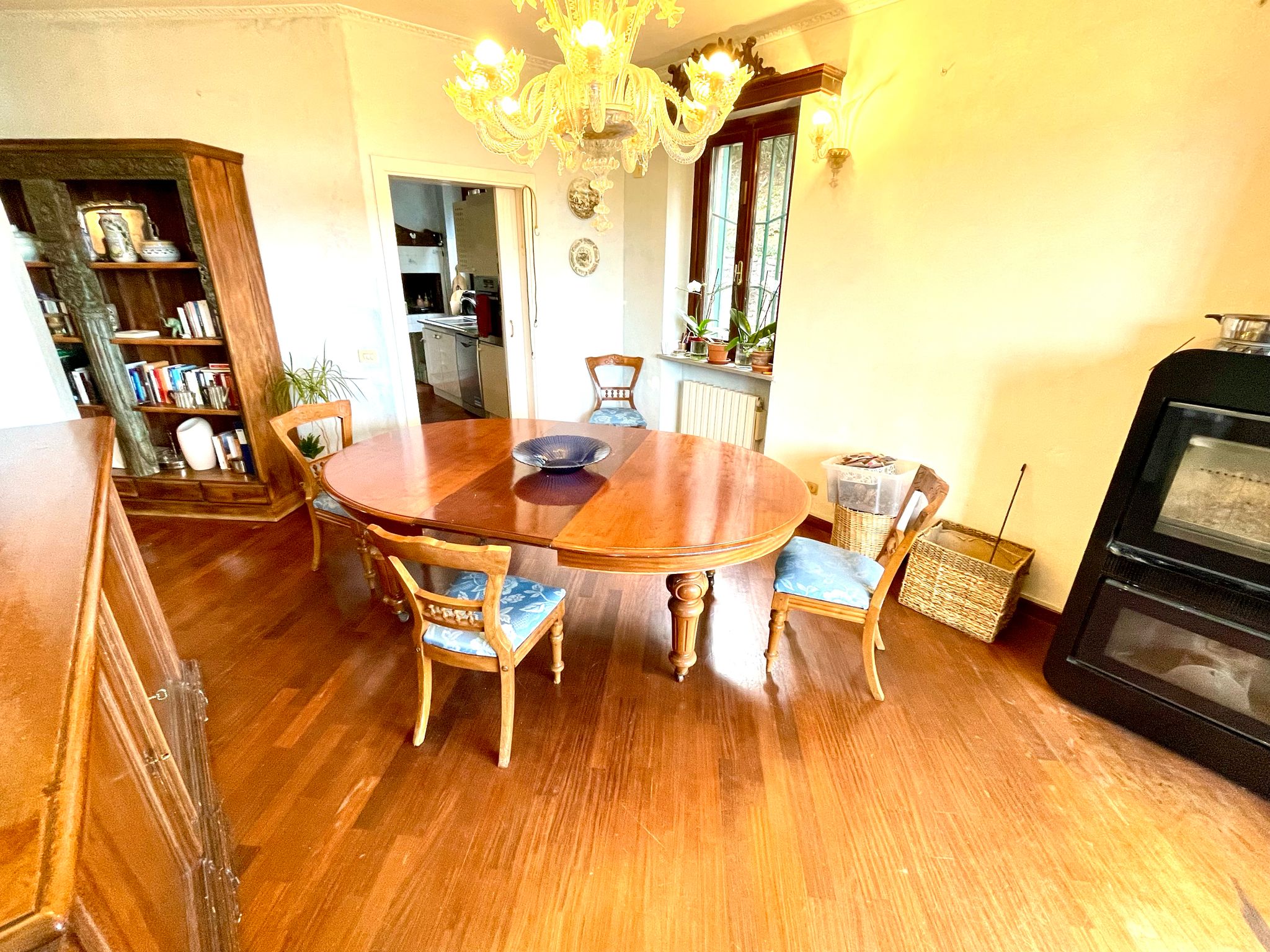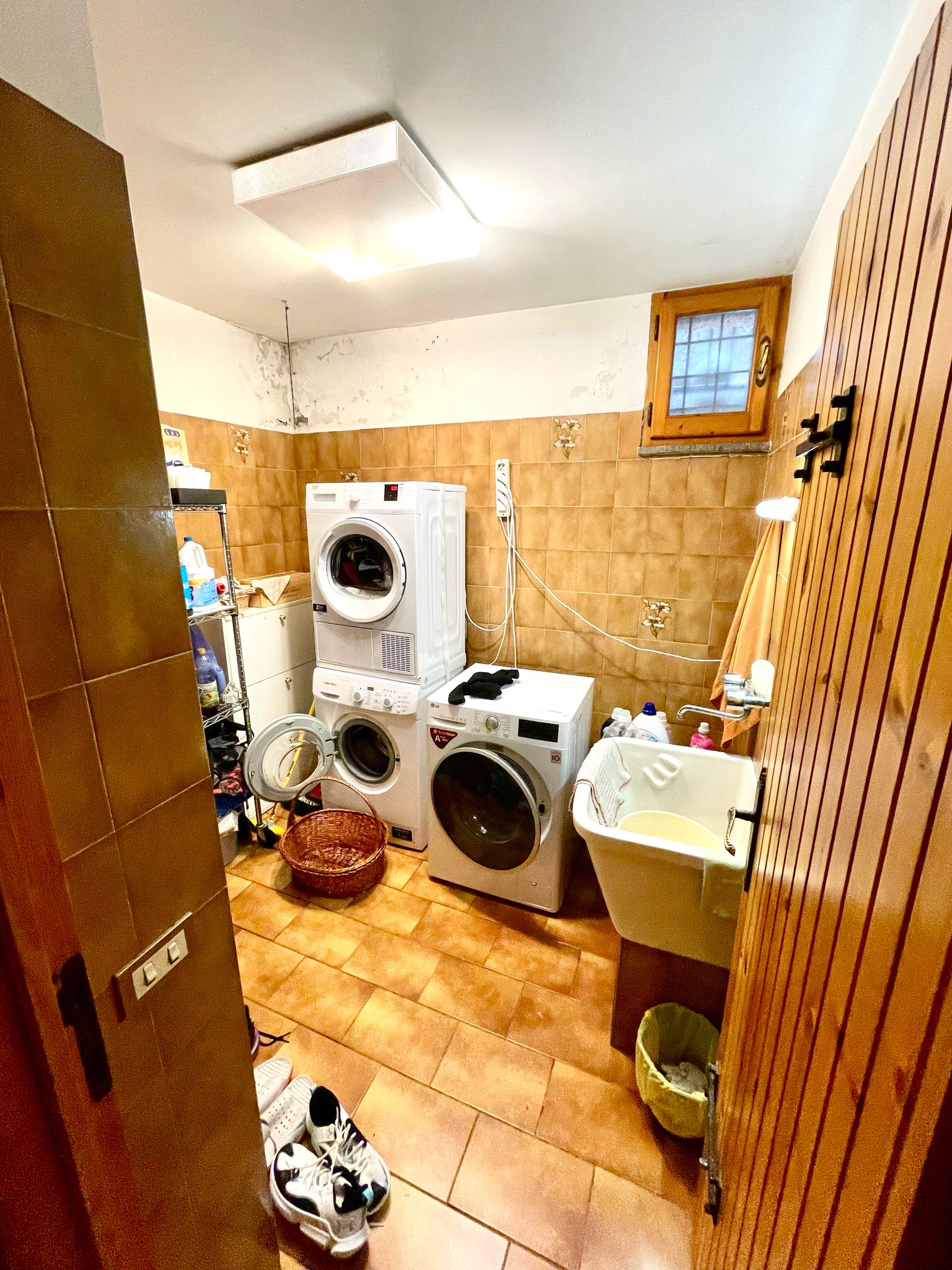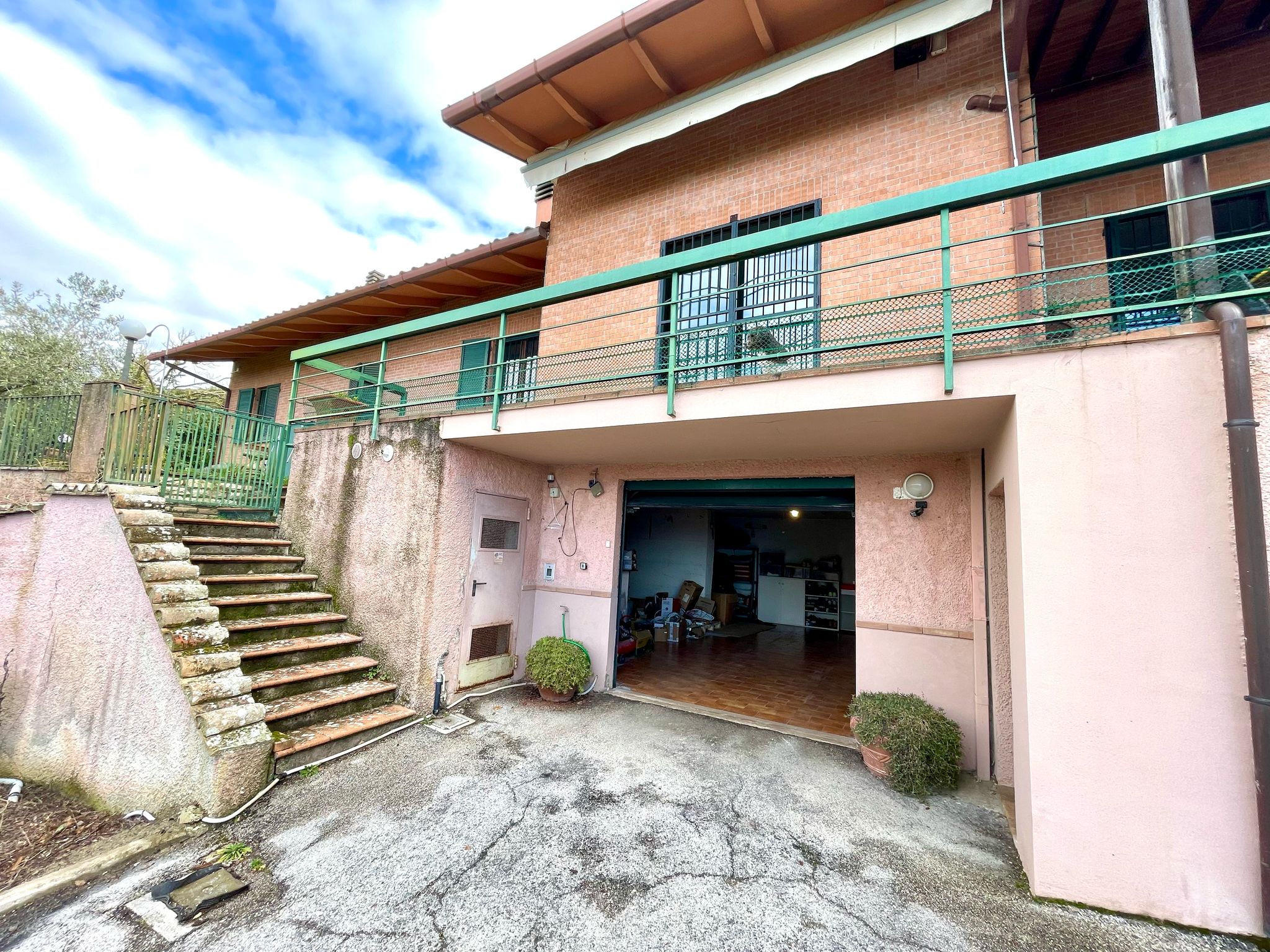 L'immobile si estende su tre livelli, al piano inferiore ampio garage, lavanderia, bagno e taverna con camino.