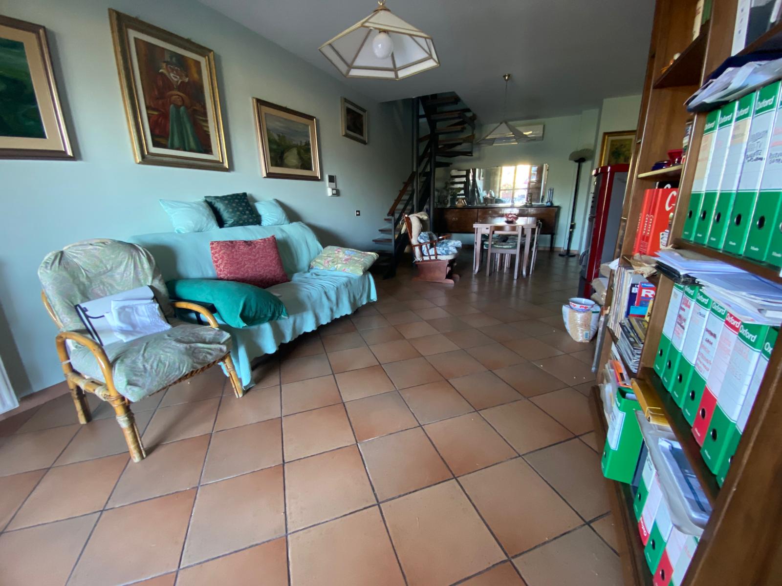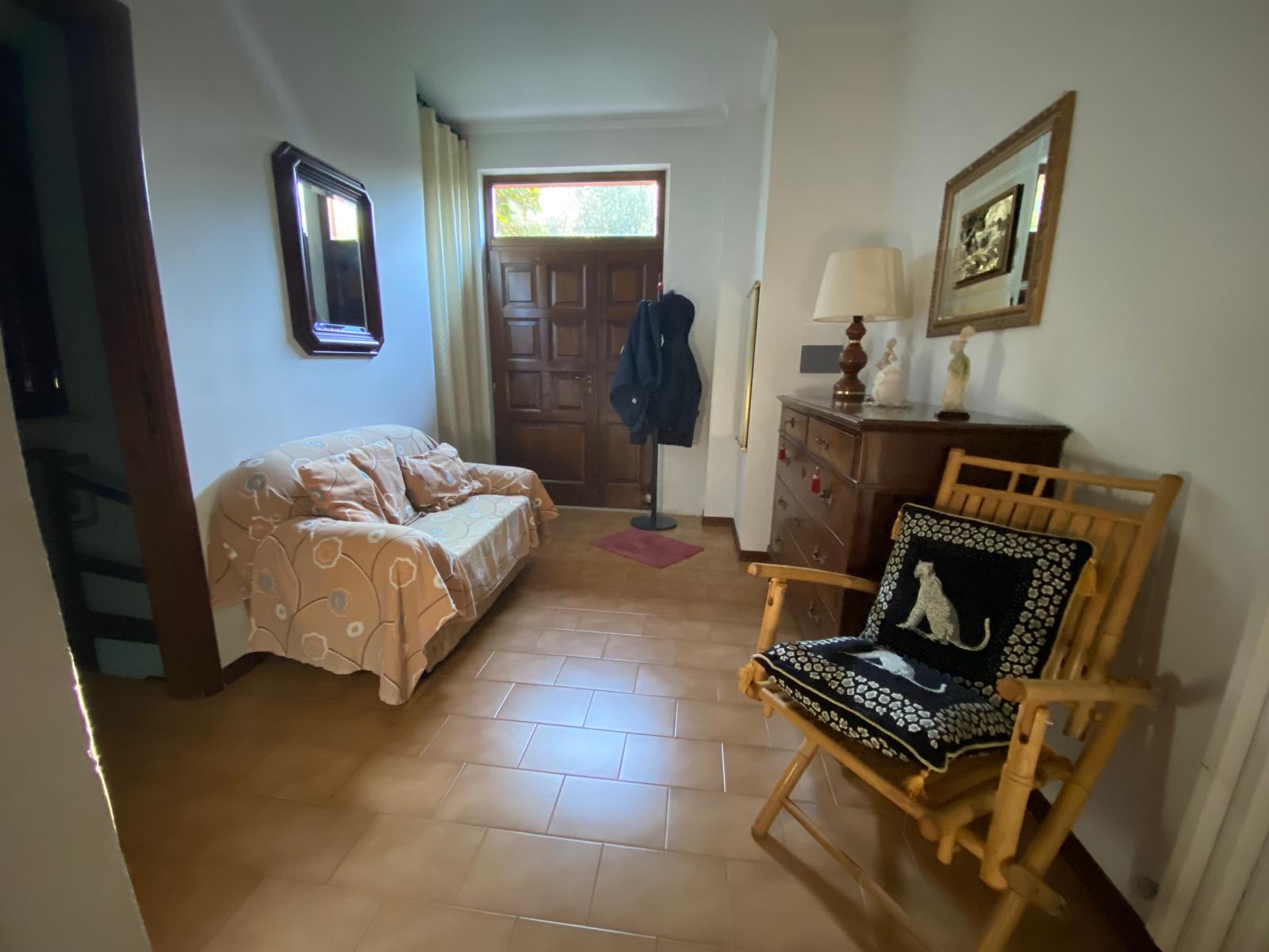 Villa singola con 600 metri di giardino, disposta su due livelli ed è così composta: Al piano terra, ingresso, cucina abitabile, due camere matrimoniali e una cameretta. al piano seminterrato la taverna con angolo cottura, dove si accede alla cantina con bagno. Completa la proprietà un garage di 48 mq dotato di luce e acqua, e un terreno di circa 1 ettaro con 135 ulivi.