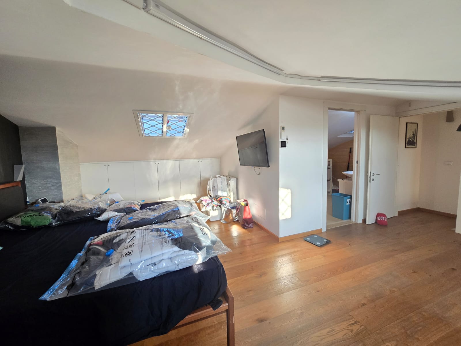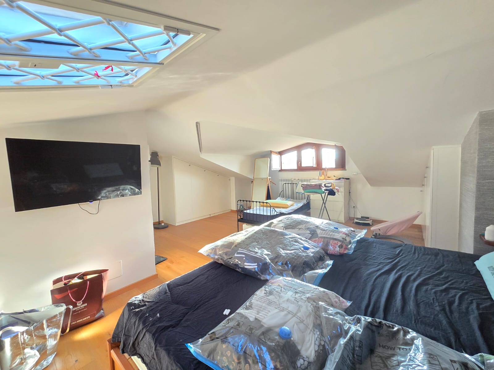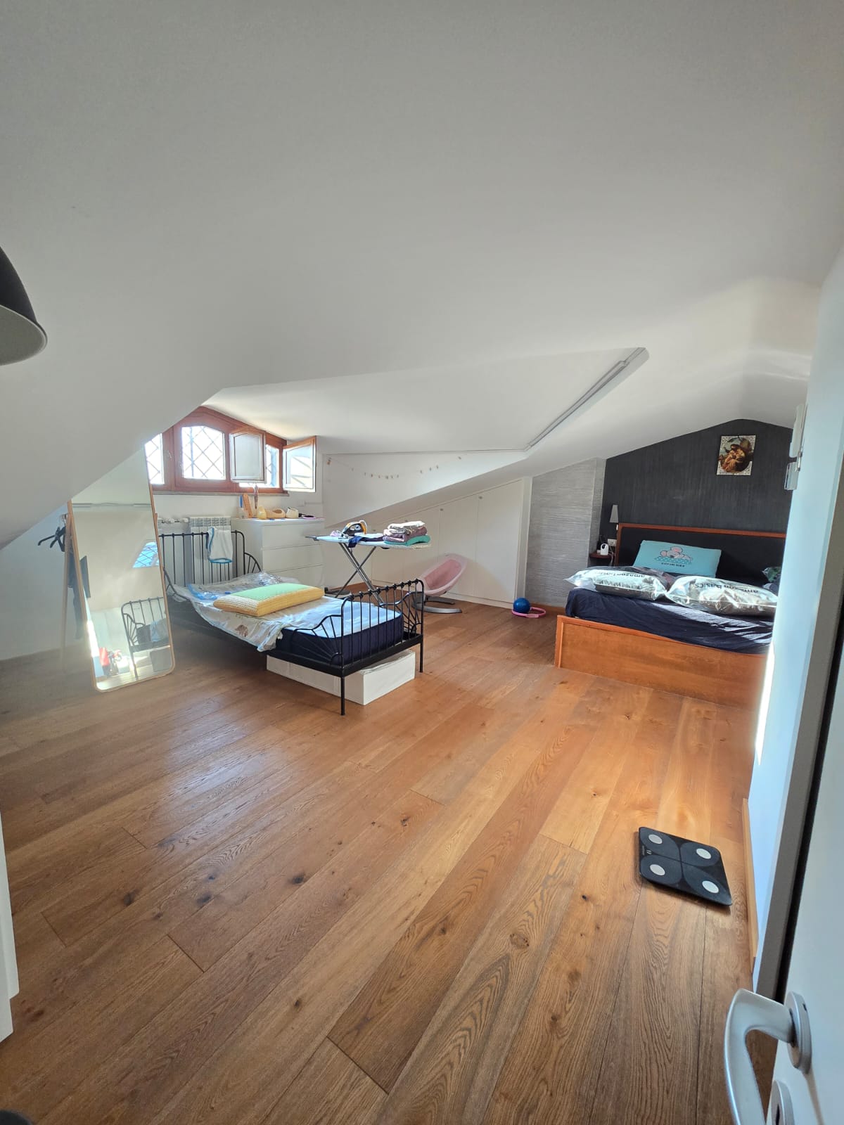 - al secondo piano troviamo un’ampia mansarda abitabile e luminosa composta da unico ambiente da utilizzare come studio o camera matrimoniale con lavatoio.