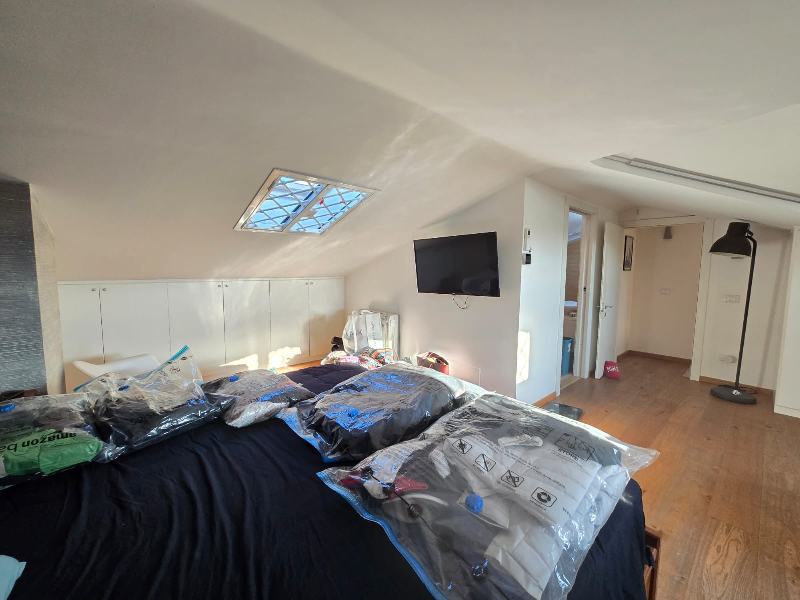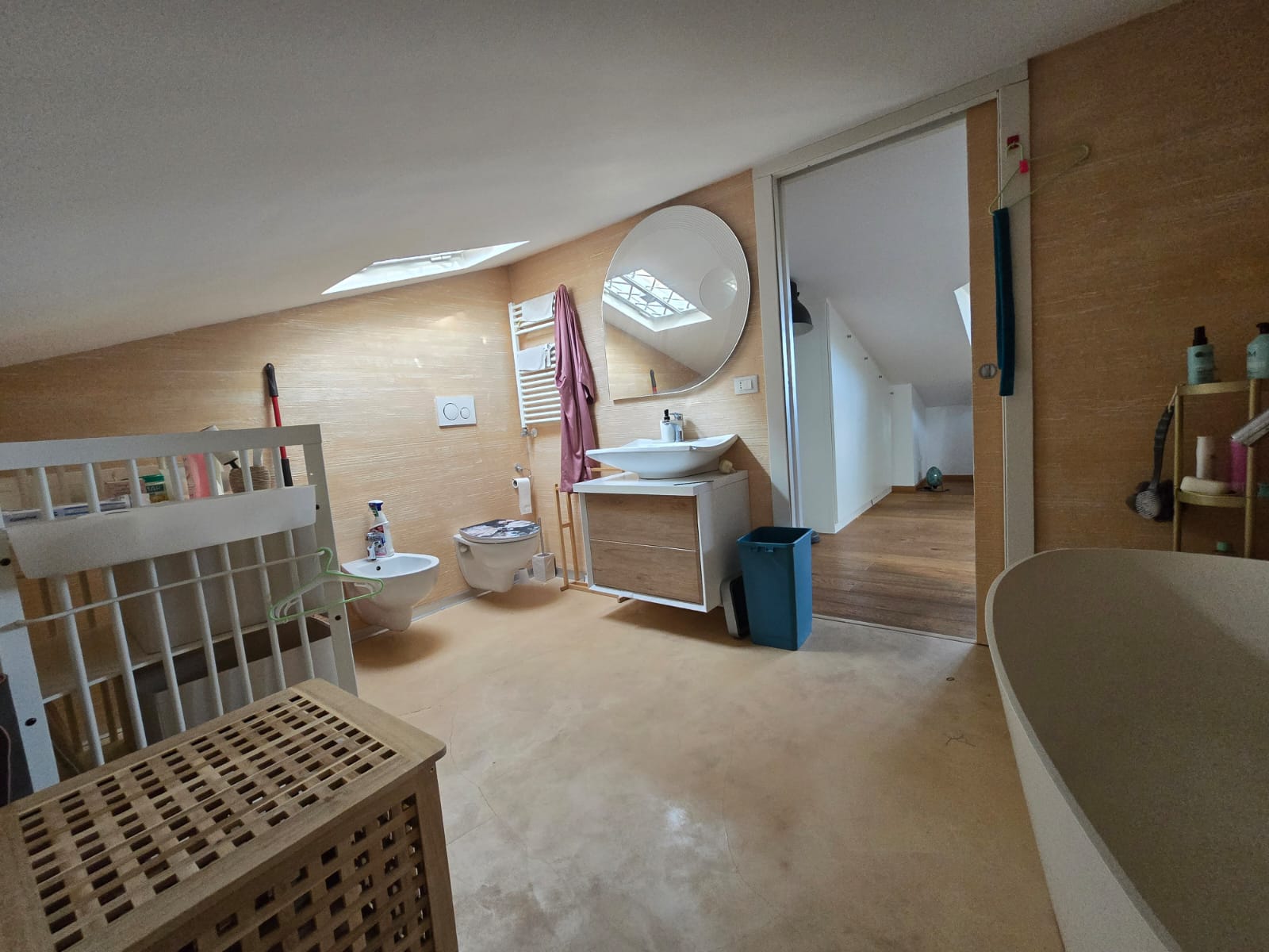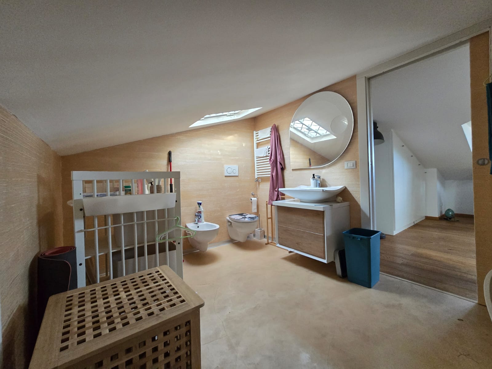 - al secondo piano troviamo un’ampia mansarda abitabile e luminosa composta da unico ambiente da utilizzare come studio o camera matrimoniale con lavatoio.