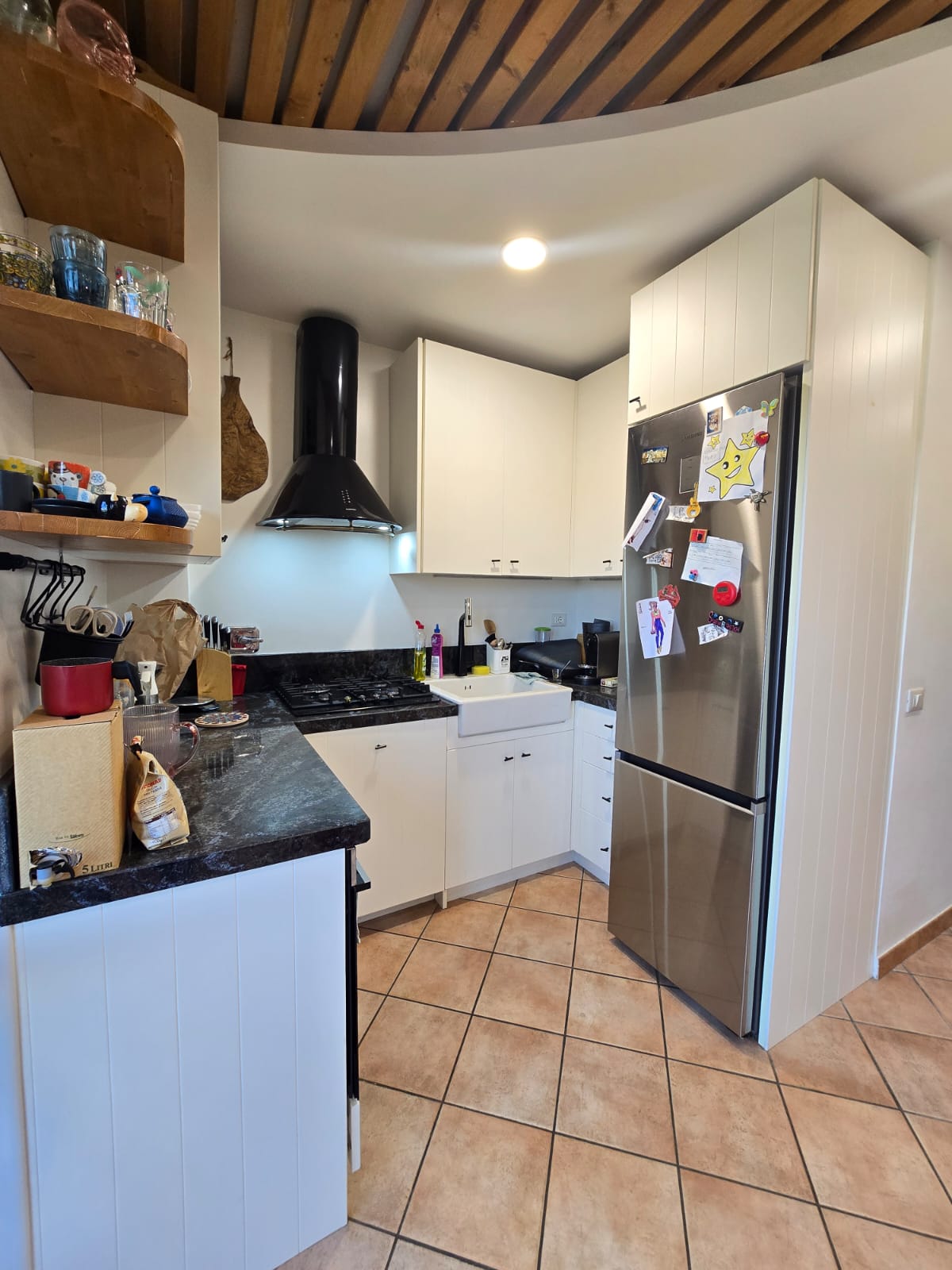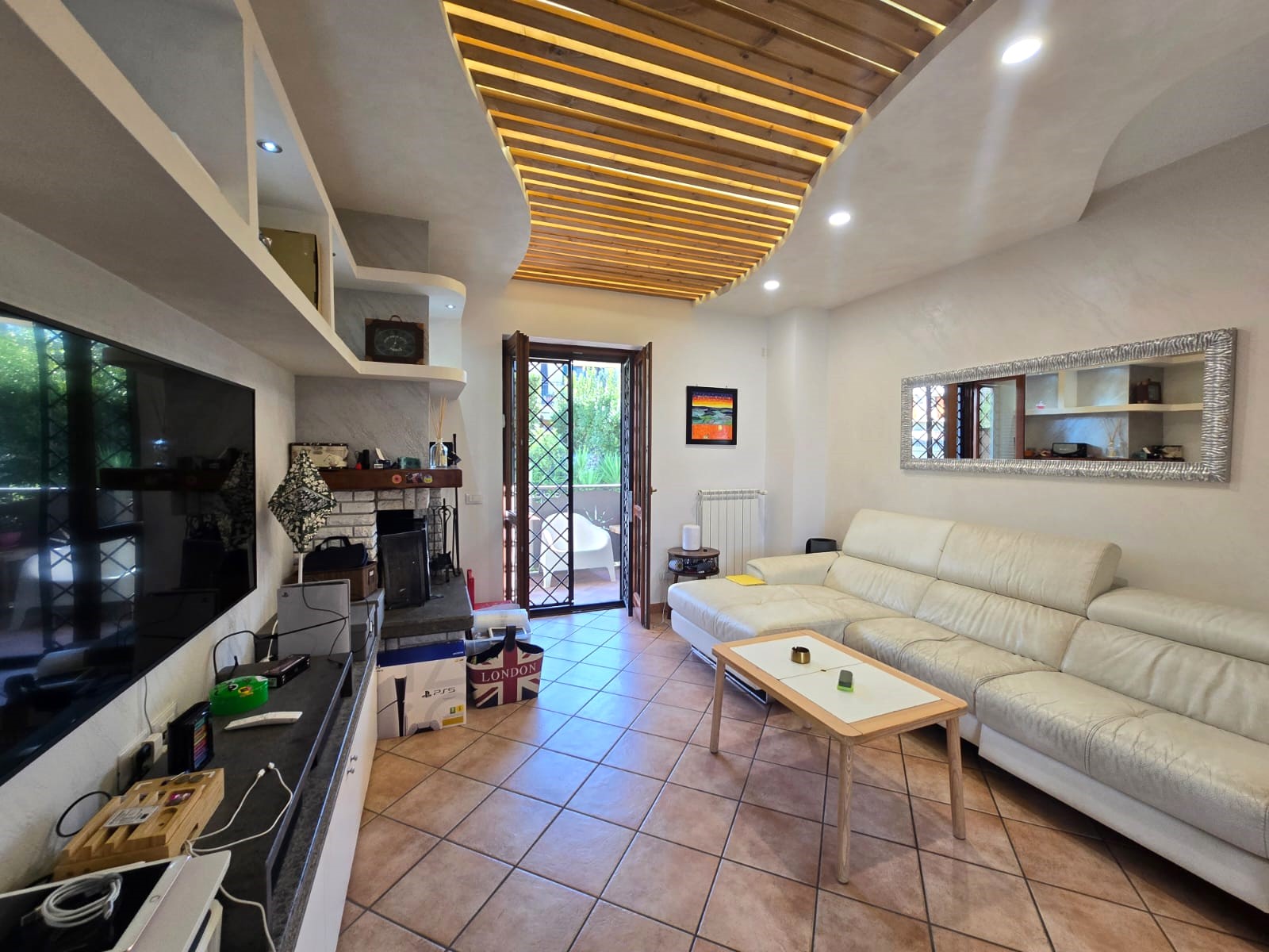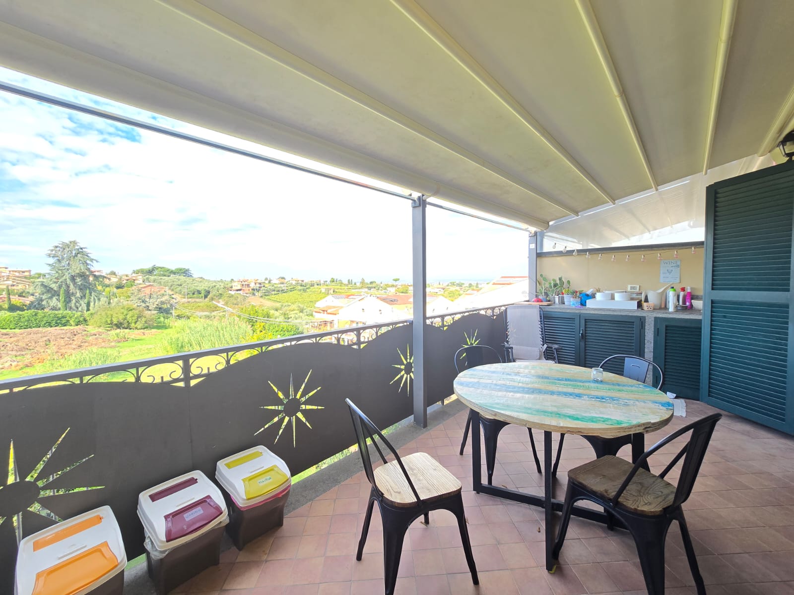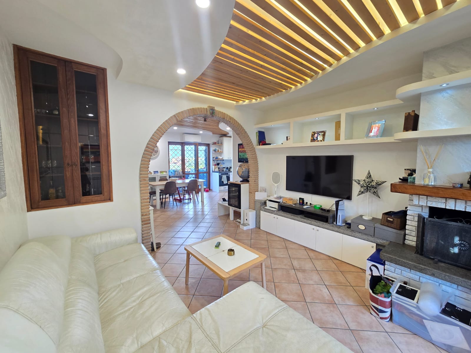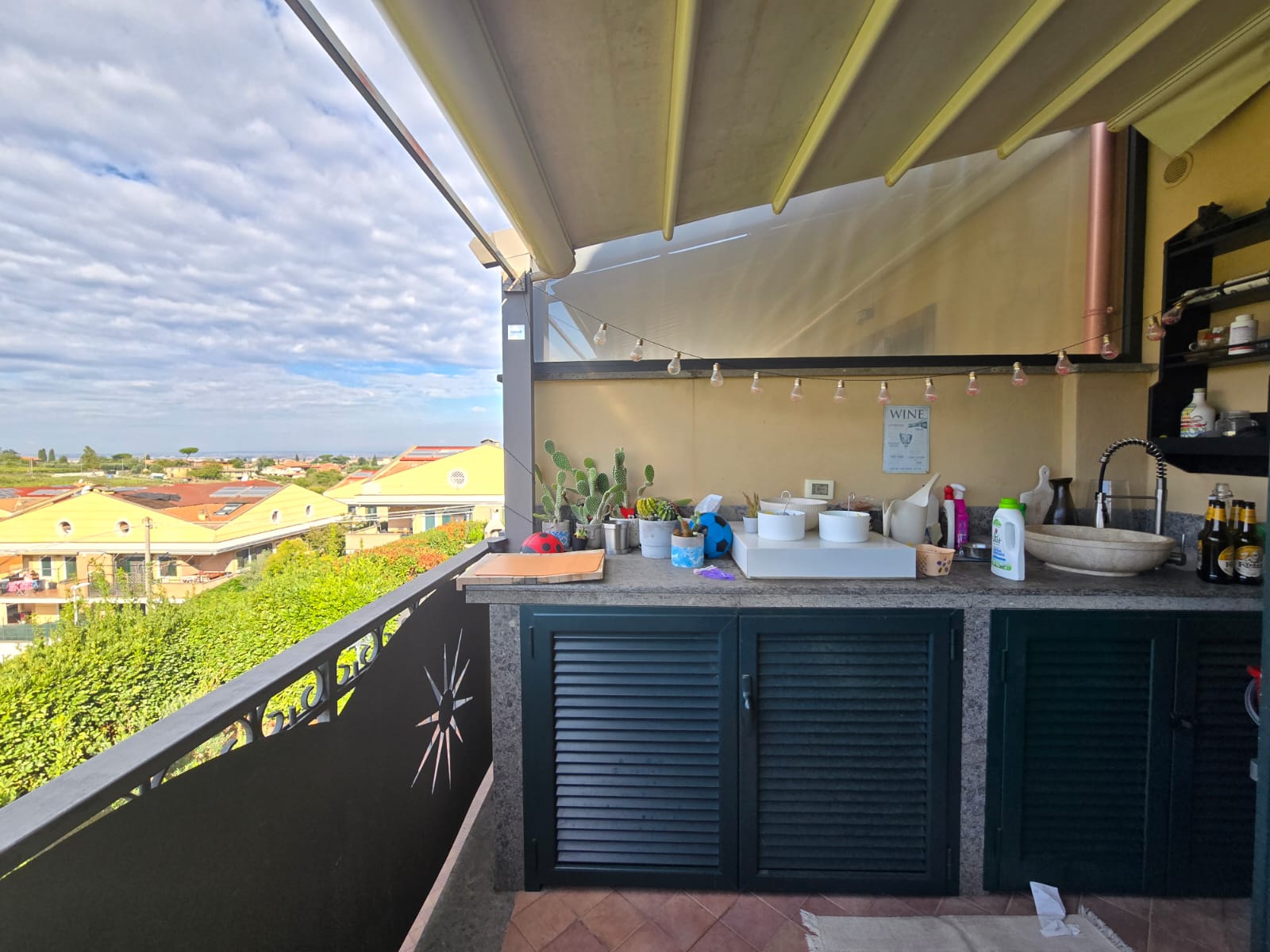 - al primo piano ci accoglie un bellissimo soggiorno doppio con camino il tutto servito da balcone ed una zona pranzo separata con angolo cottura, anch'essa con uscita sul balcone panoramico con cucina esterna attrezzata ideale per pranzi all’aperto con pergotenda presente.