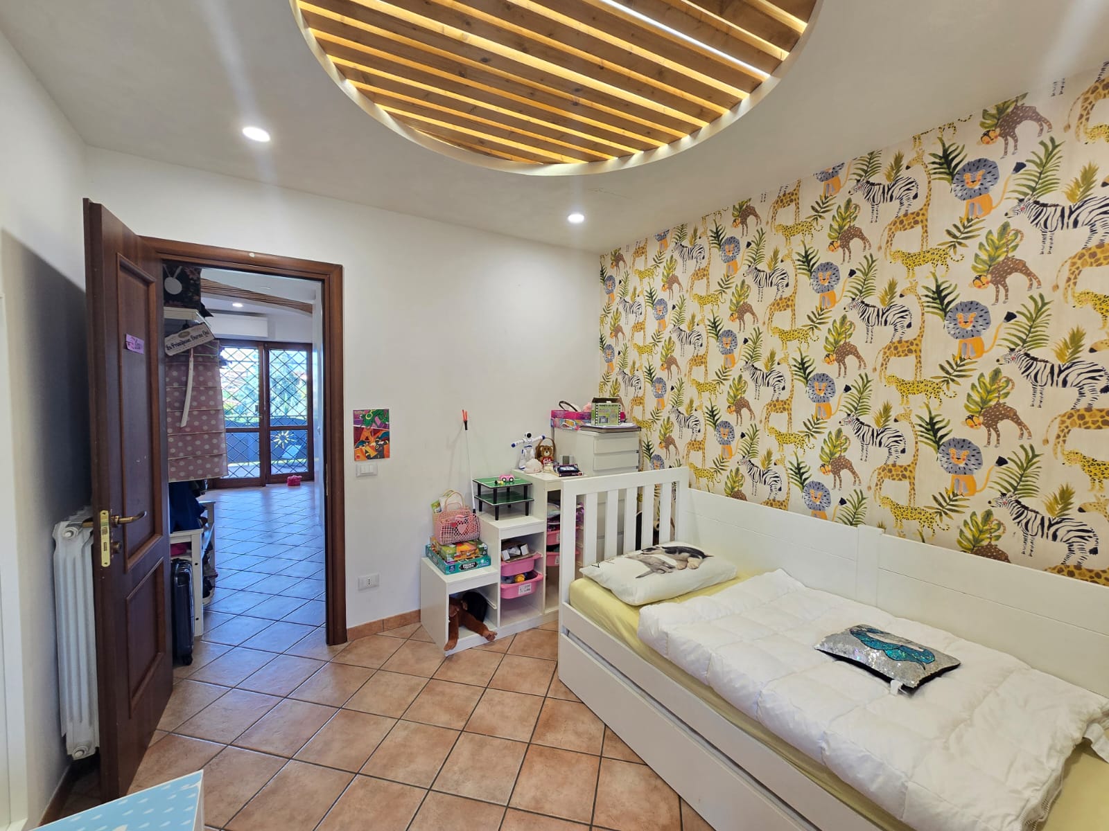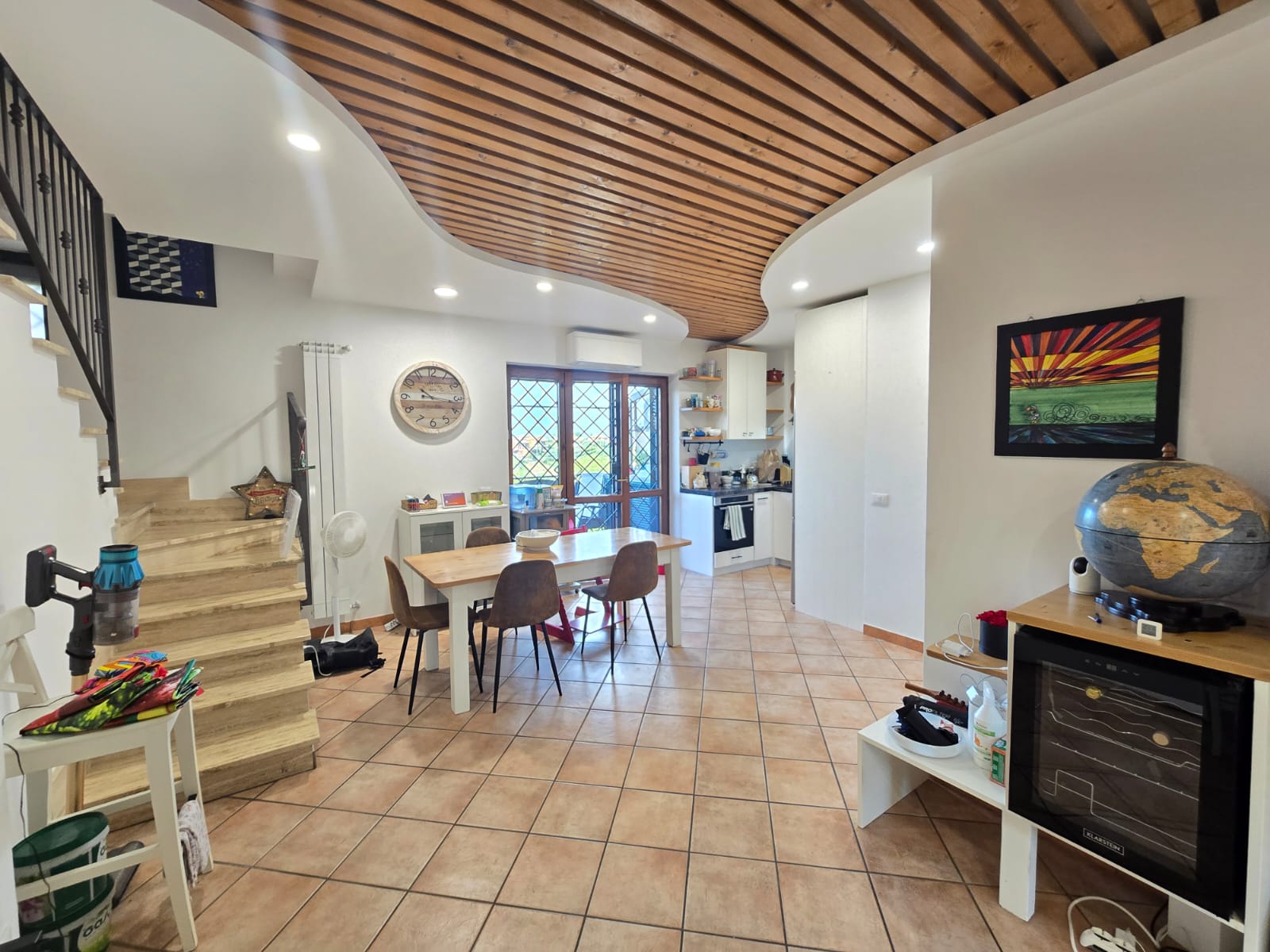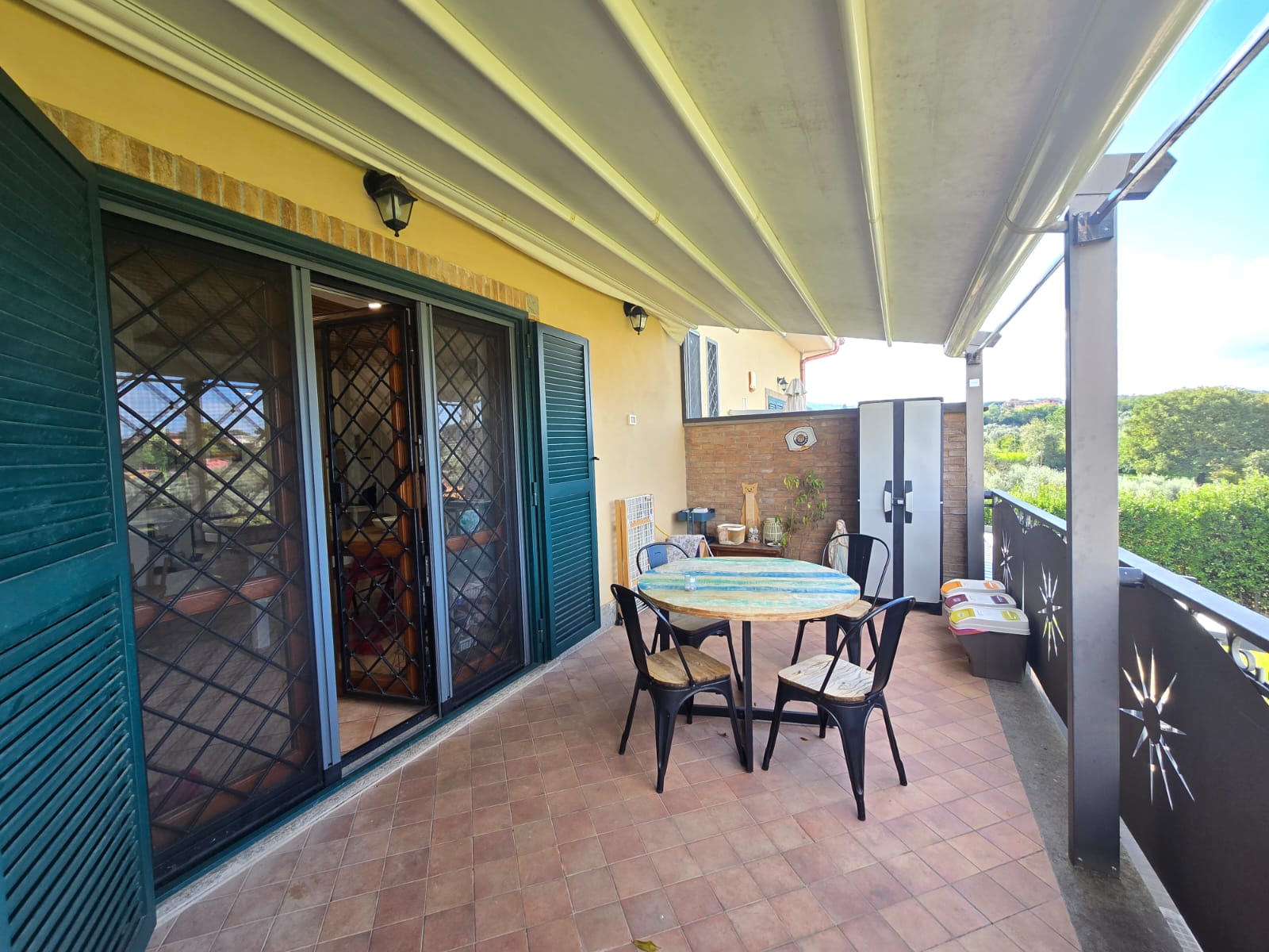 L'immobile si presenta in ottime condizioni, dotato di porta blindata, infissi doppio vetro, grate e persiane in ferro, condizionatore, videocitofono e predisposizione allarme e climatizzatori.
