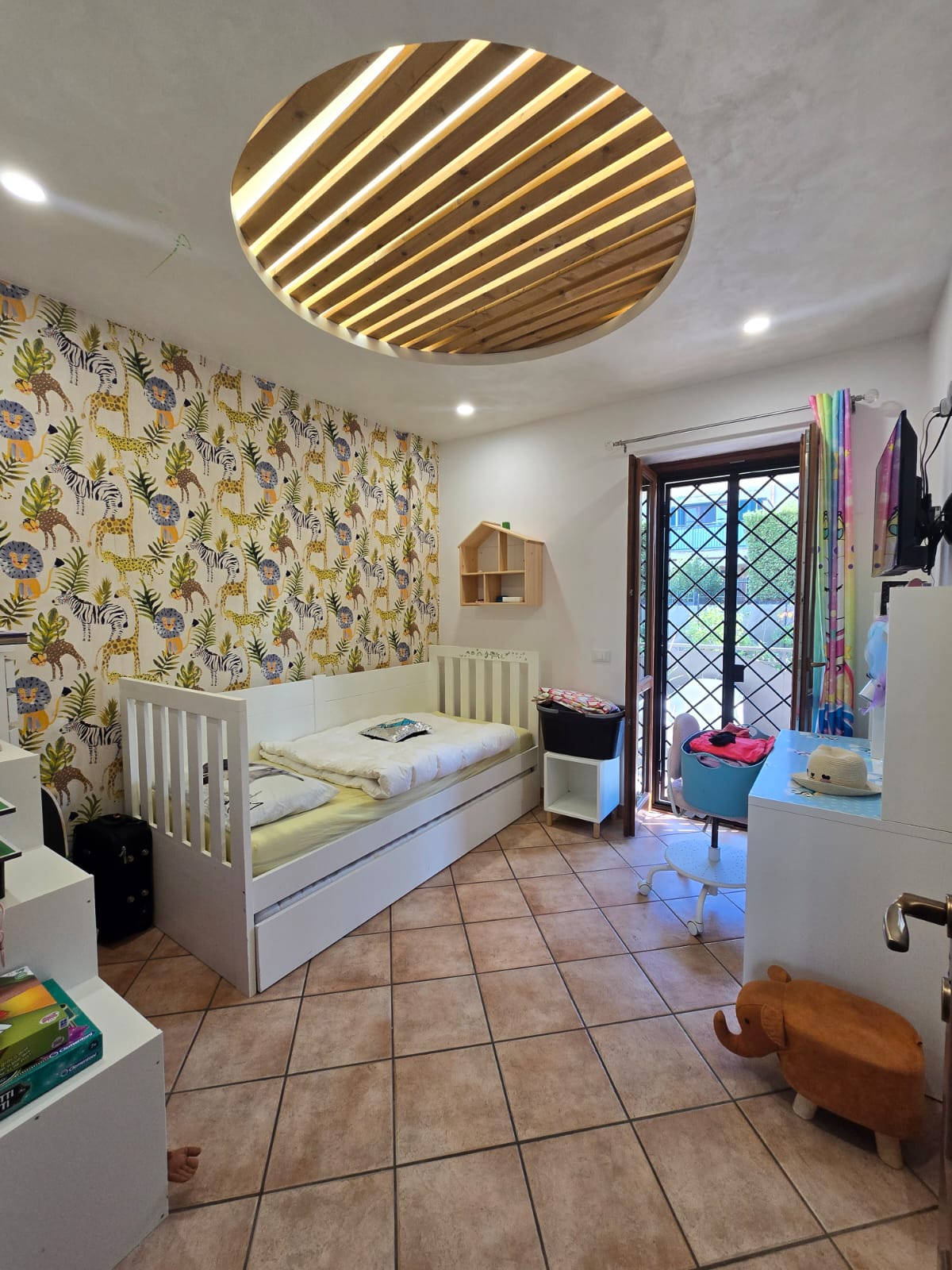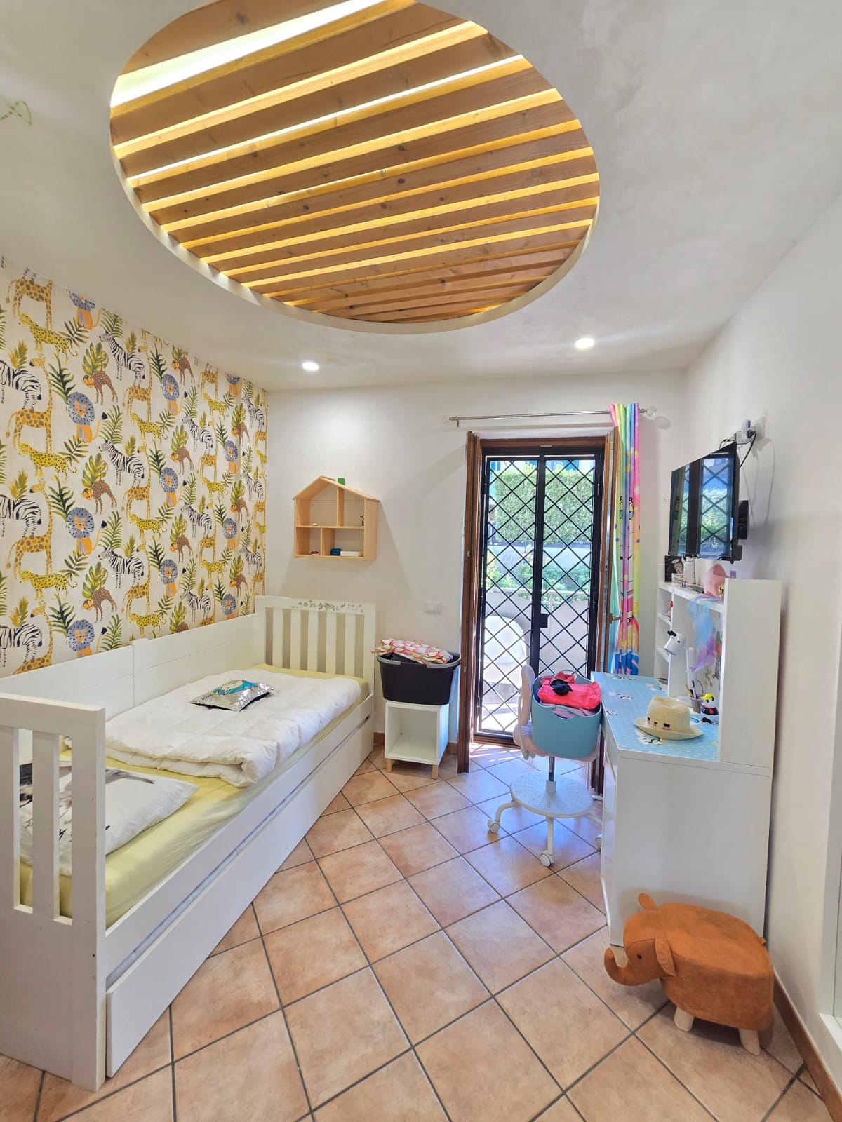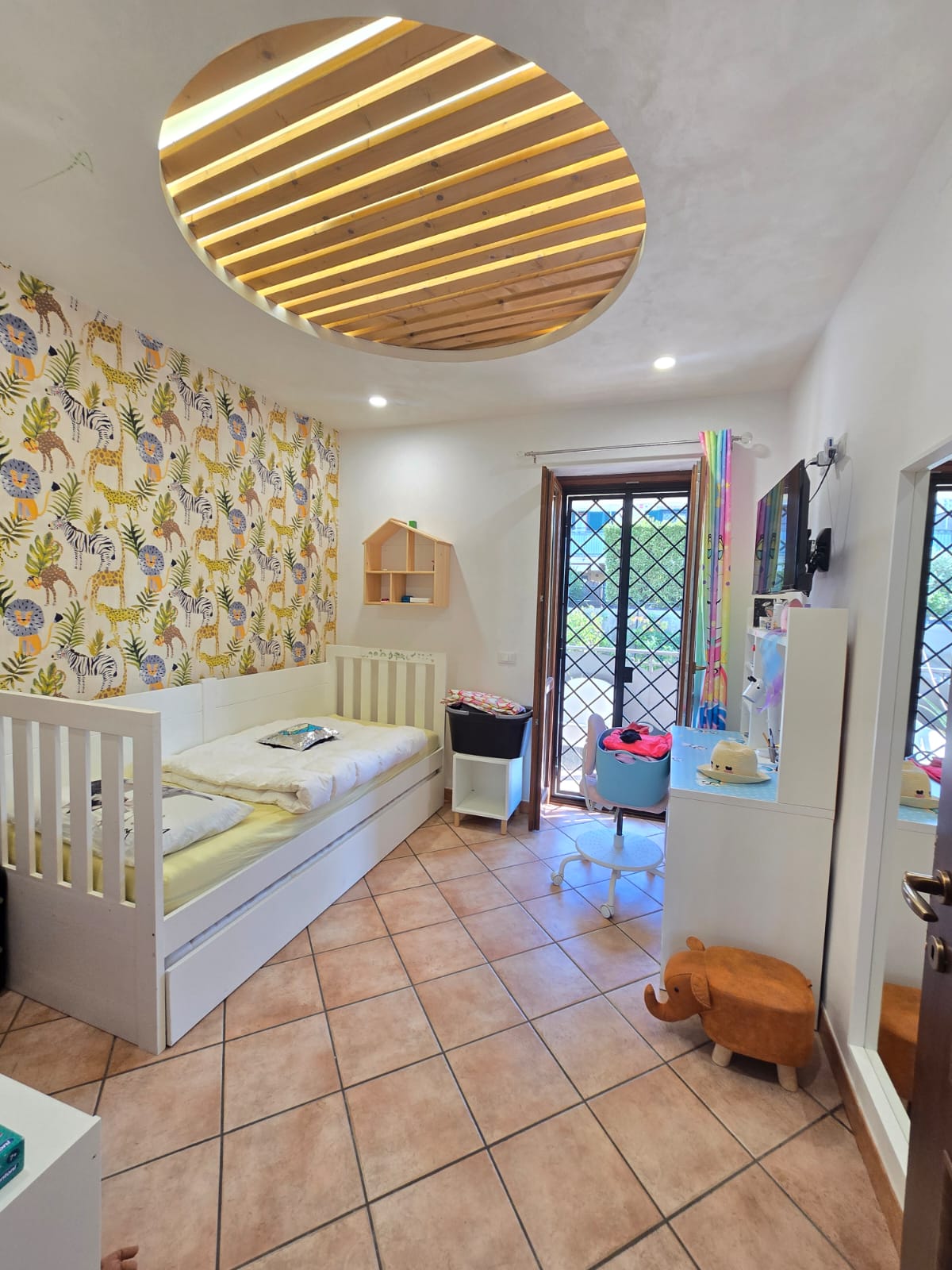 L'immobile si presenta in ottime condizioni, dotato di porta blindata, infissi doppio vetro, grate e persiane in ferro, condizionatore, videocitofono e predisposizione allarme e climatizzatori.