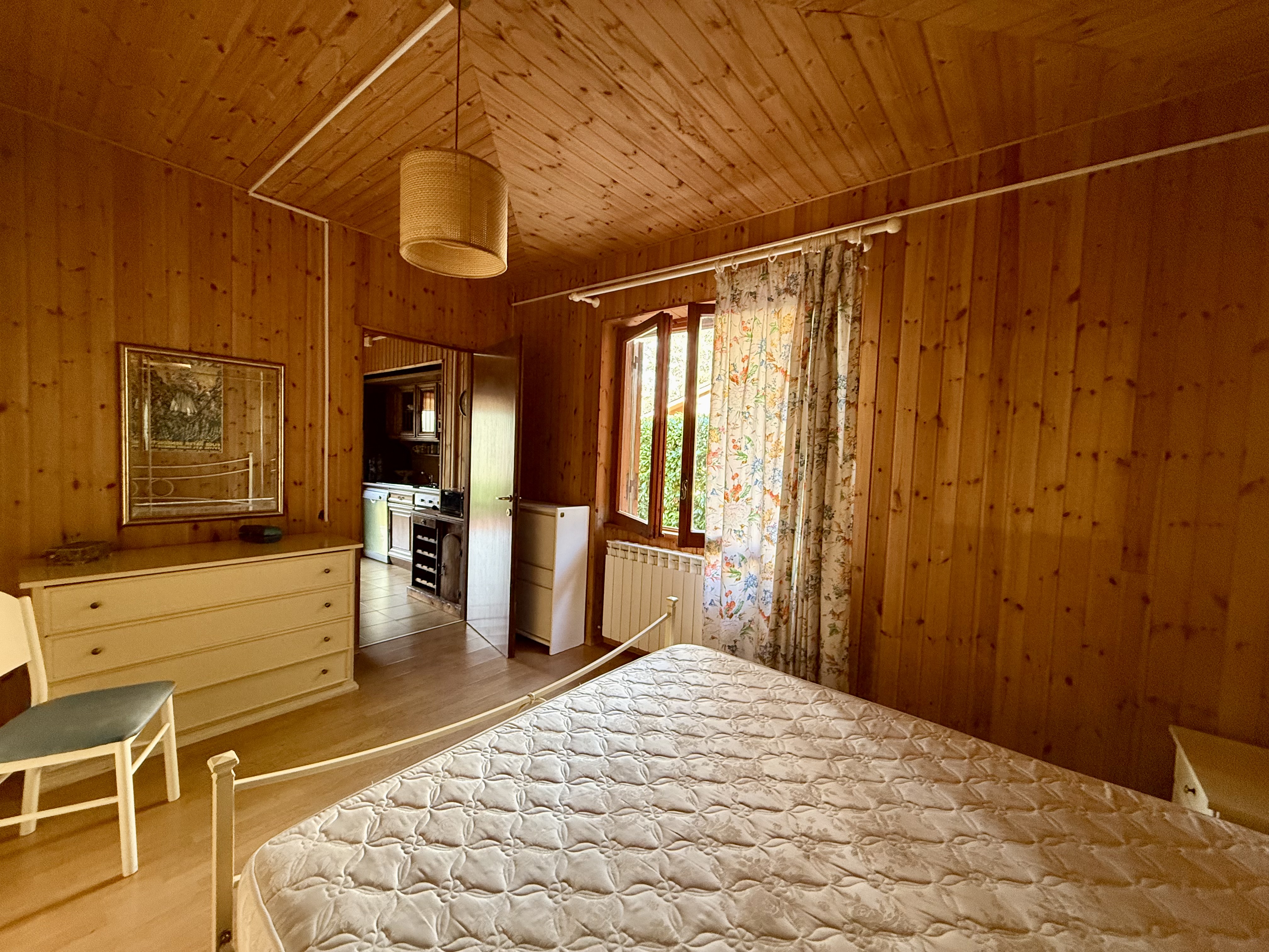 L'ingresso indipendente conduce a un luminoso salone dotato di camino, perfetto per trascorrere momenti di relax. La cucina ben attrezzata si affaccia su un giardino privato di 160 m², ideale per cene all'aperto e momenti di svago. La camera da letto matrimoniale è accogliente e il bagno è funzionale, rendendo questa casa perfetta per una coppia o una piccola famiglia.