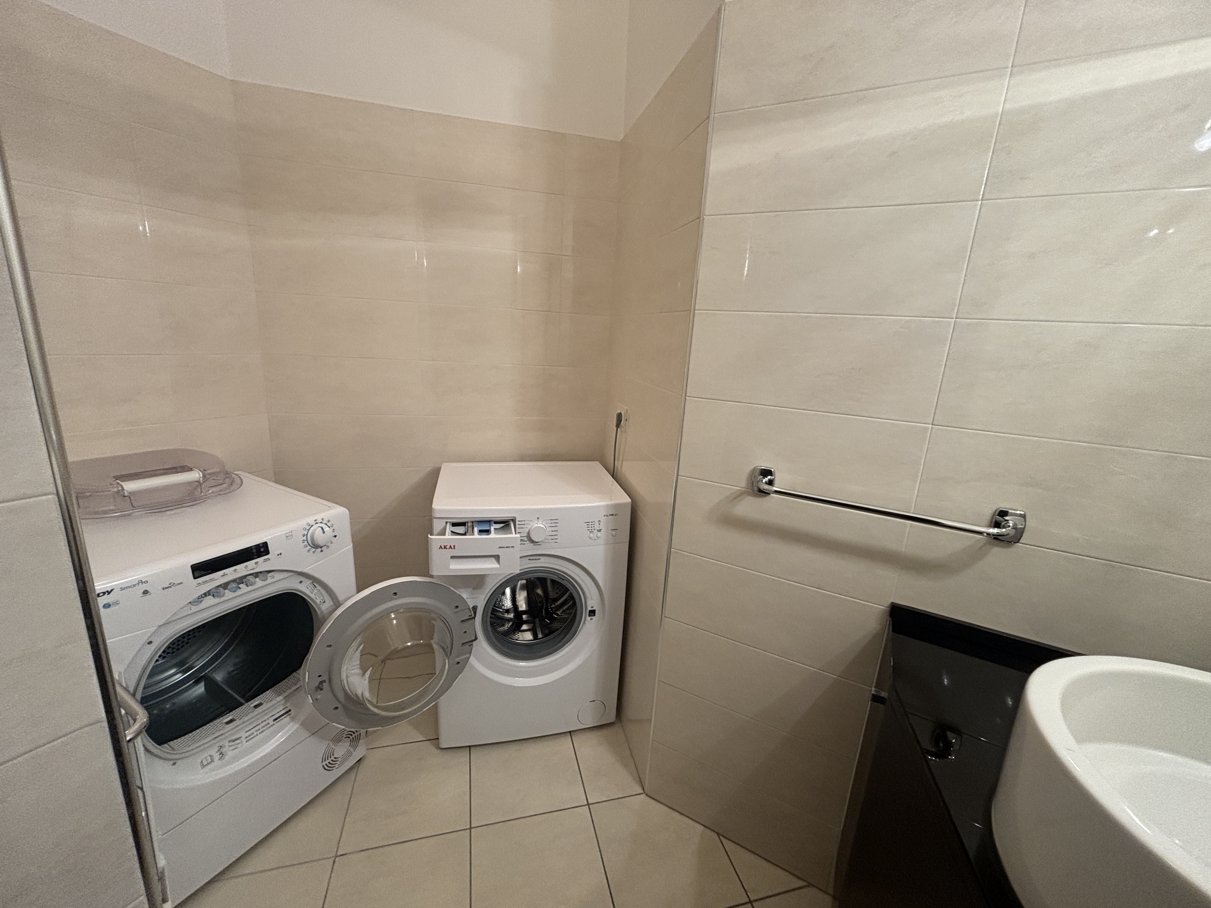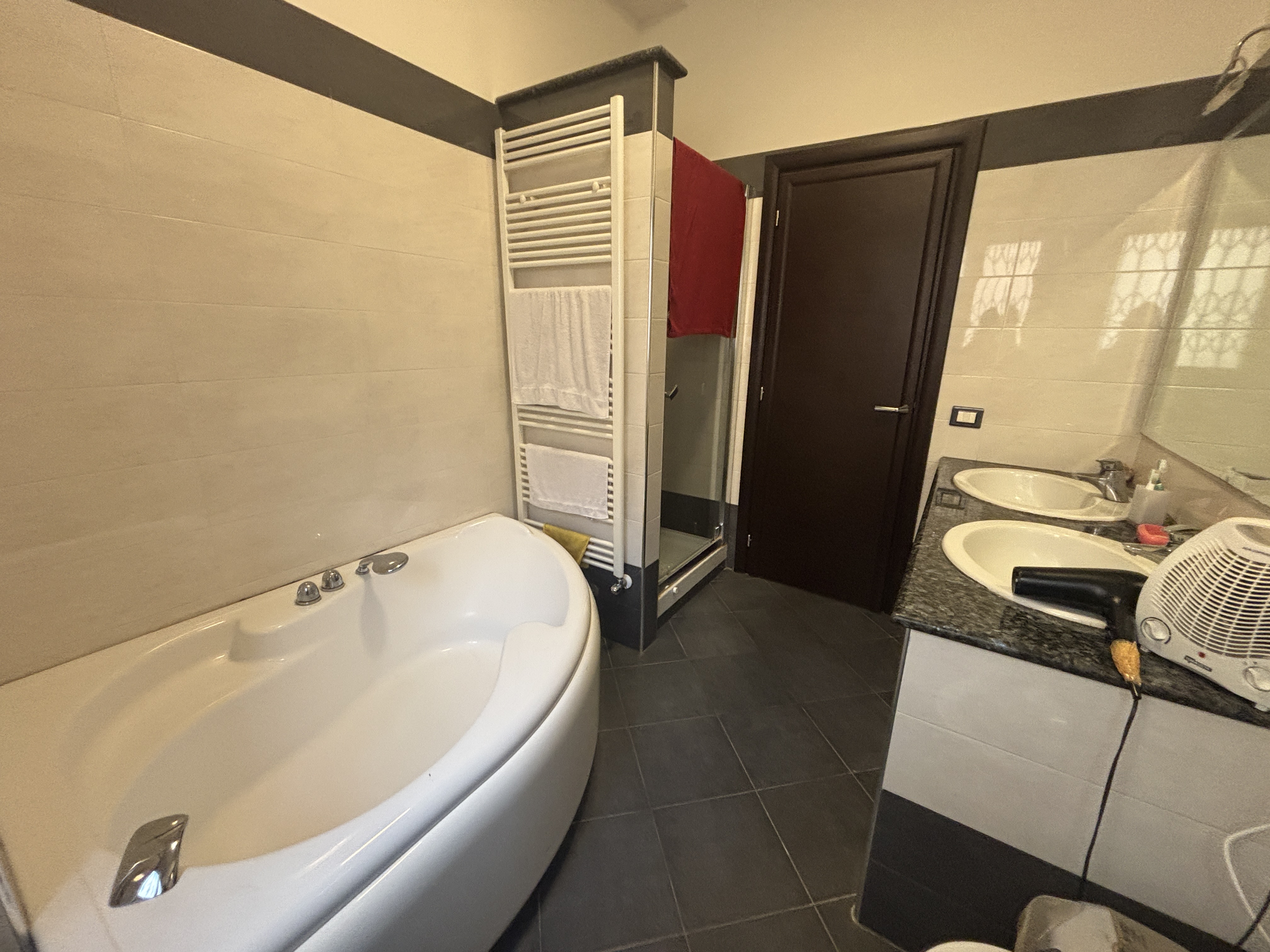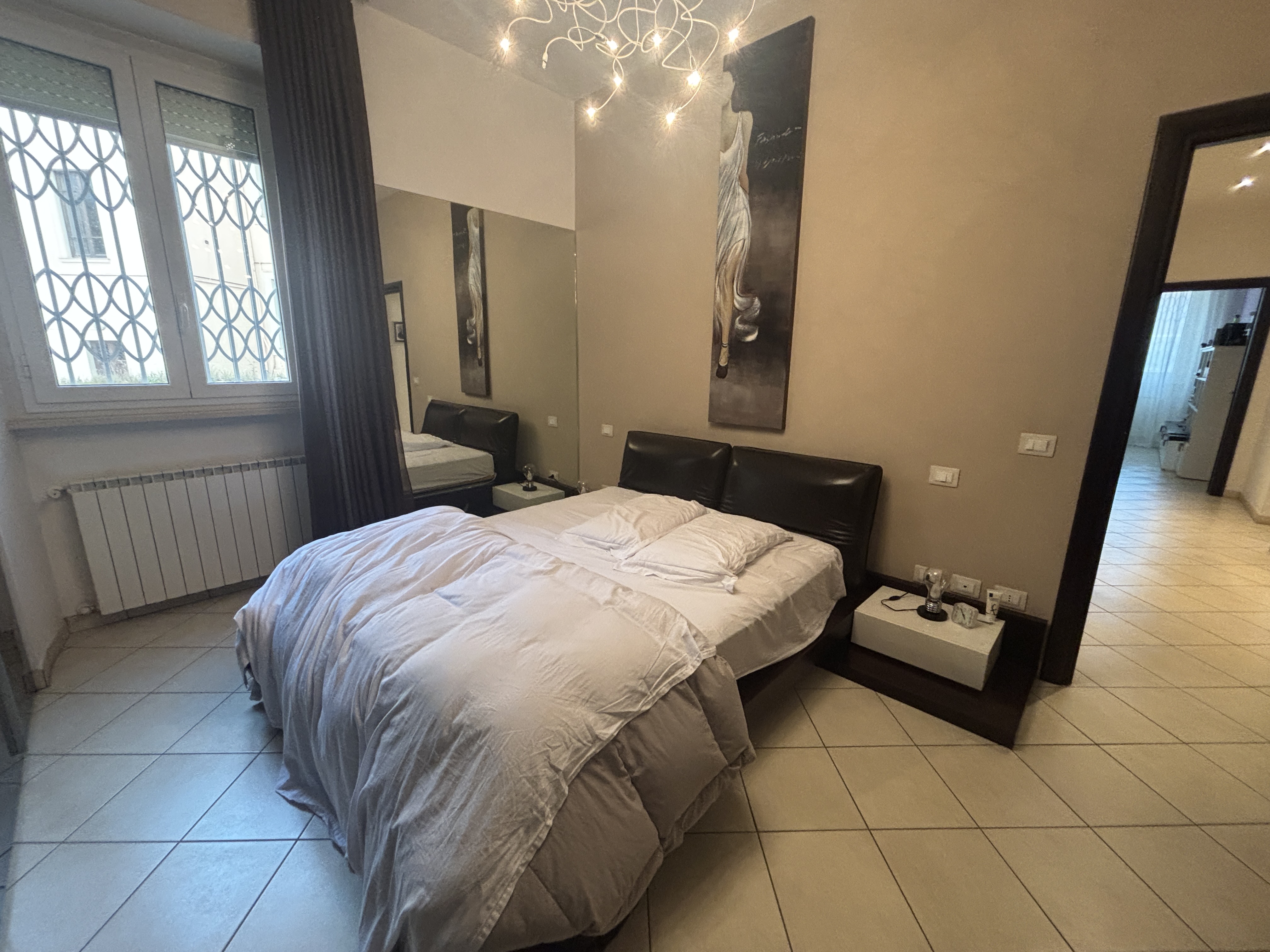 La camera matrimoniale, ampia e silenziosa, rappresenta una vera oasi di relax, mentre il bagno – finemente rifinito – dispone sia di doccia che di vasca, combinando stile e funzionalità; è presente inoltre una comoda zona lavanderia perfettamente organizzata.