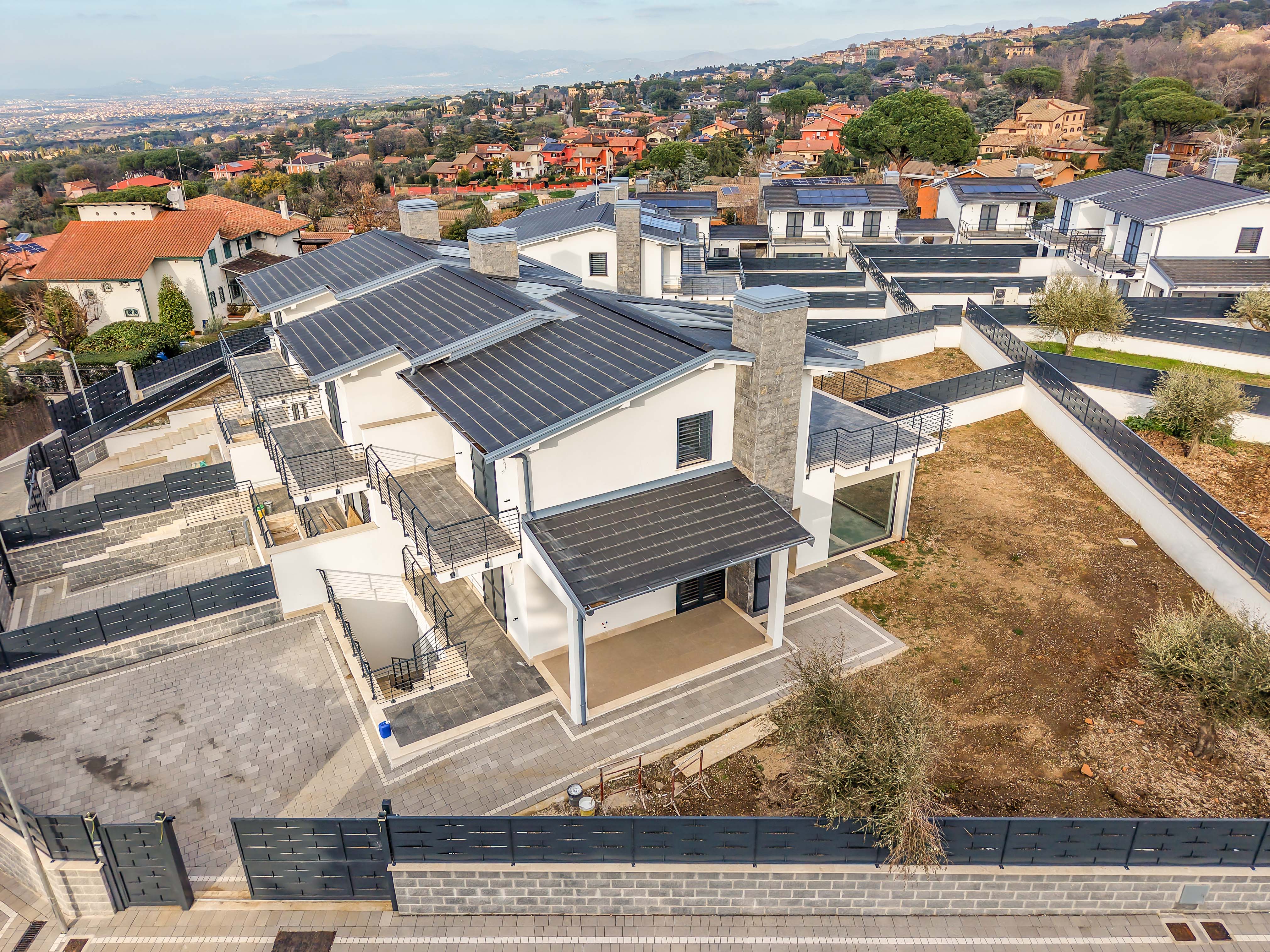 RESIDENCE "BORGO SENTIERO DEL BOSCO " - GROTTAFERRATA ULTIMA DISPONIBILITA' IN PRONTA CONSEGNA.. !!! La Bonifazi Immobiliare propone in vendita nel Comune di Grottaferrata, a pochi passi da Roma, all'interno di un nuovo complesso residenziale composto da 16 unità VILLE BIFAMILIARI E UNIFAMILIARI di NUOVA COSTRUZIONE di varie metrature disposte su tre livelli di circa 260 mq. *PIANO TERRA E PIANO PRIMO ACCATASTATI COME RESIDENZIALE. Completano la proprietà di ogni singolo immobile il portico, la serra bioclimatica e giardino privato contenenti posti auto. * ANNUNCIO RIFERITO A PORZONE DI BIFAMILIARE CENTRALE * Le ville sono così disposte: Piano terra di 60 mq composto da salone, angolo cottura, camera, bagno, serra bioclimatica, portico e giardino. Piano primo di 60 mq risultante catastalmente RESIDENZIALE composto da due camere da letto, bagno e due balconi. Piano interrato di circa 100 mq composto da unico ambiente con possibilità di personalizzazione. Completa la proprietà un giardino privato di circa 200 MQ contenente posti auto. Le ville sono altamente rifinite e sono dotate di impianto termico a pavimento, pannelli solari per produzione di acqua, 2KW di Fotovoltaico, grate di sicurezza e tetto ventilato in legno lamellare. Classe energetica A4. Il residence è totalmente chiuso con cancello elettrico, l'illuminazione è presente all'interno del residence e la viabilità interna è fatta in betonella. *ULTIMA DISPONIBILITA' .. prezzo € 595.000 * * IMMOBILE VISIONABILE SU APPUNTAMENTO* Il Gruppo Bonifazi opera nel settore immobiliare dal 1995 con agenzie immobiliari presenti su gran parte del territorio nazionale. Il Franchising Immobiliare Bonifazi mette a disposizione tutta l’esperienza maturata in anni di attività con la volontà di trasferire questo prezioso know-how ai propri affiliati, attraverso il Manuale Operativo Bonifazi che racchiude una metodologia di lavoro precisa e capillare, valida per ogni punto vendita.