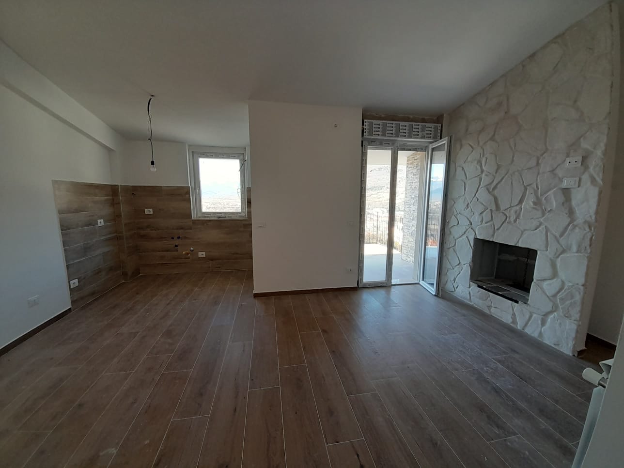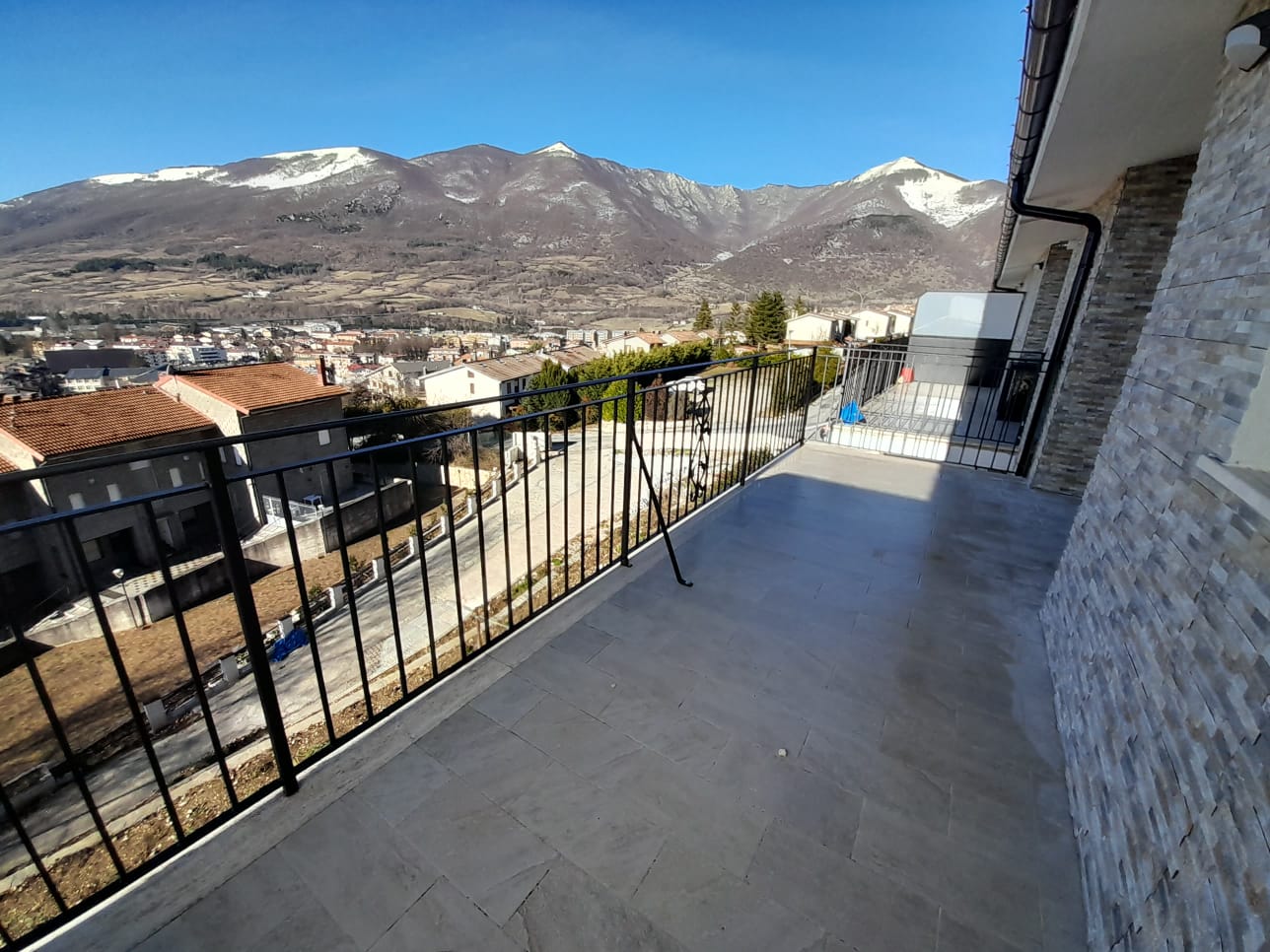 Castel di Sangro, in zona panoramica e assolata, proponiamo in vendita ultima disponibilità in nuova costruzione, composta da soggiorno con camino e cucina a vista, due camere, due bagni, balcone e terrazzo . L'immobile dispone inoltre di posto auto.
